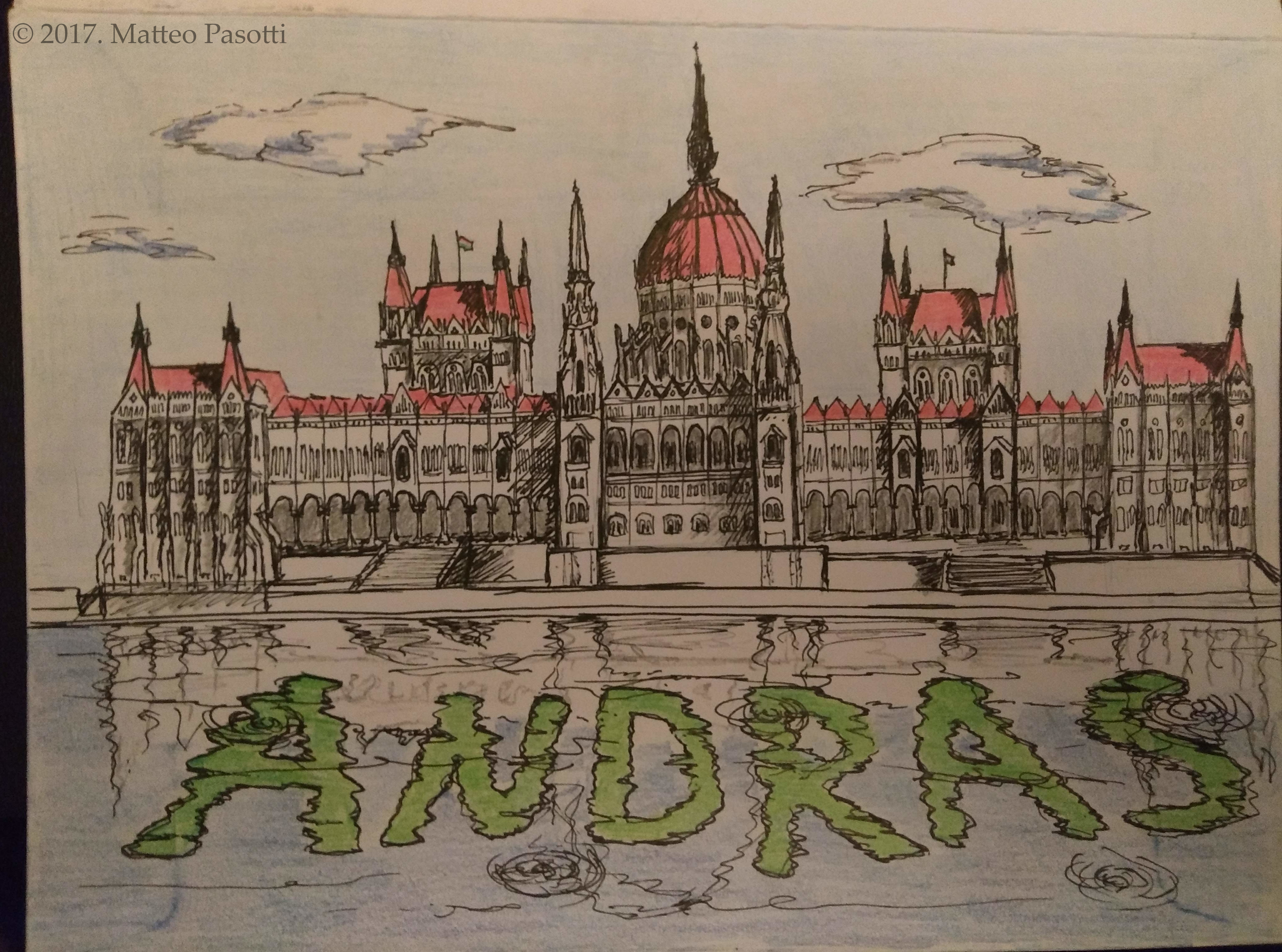 A birthday envelope depicting the Hungarian Parliament Building in Budapest.