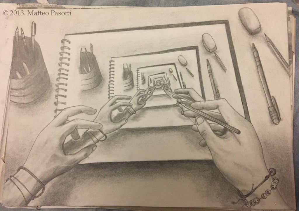 A loop that defies the artistic boundaries of paper to dive beyond its surface.